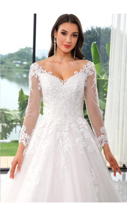 Anna Bridal Ball Gown – Elegant Lace Beaded A-Line Wedding Dress