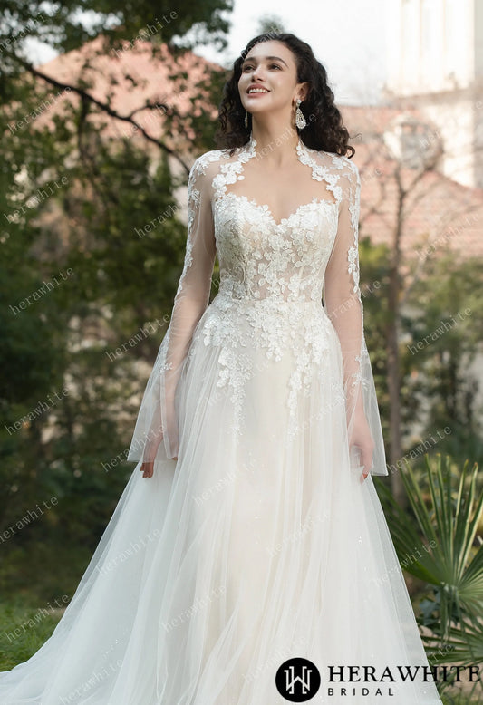 Ethel - Blossom Lace Long-Sleeve Wedding Gown