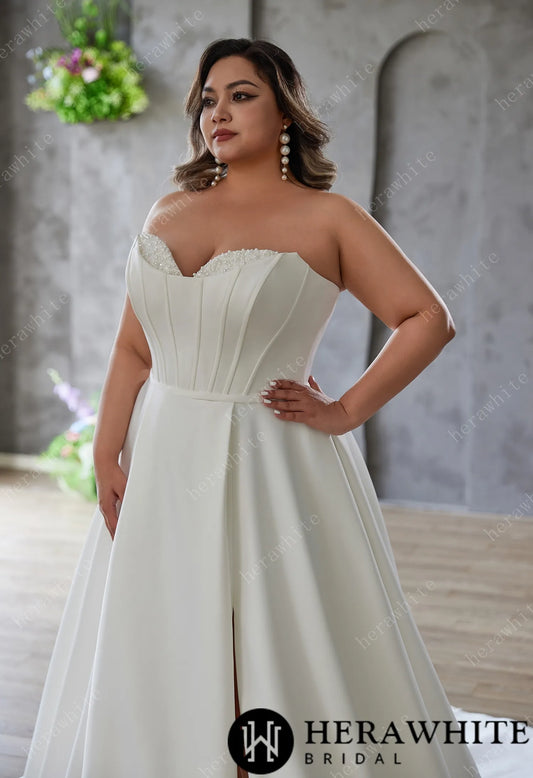 Mattie- Satin Sculpted Strapless A-Line Bridal Gown