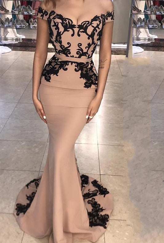 Embroidered Lace Fishtail Formal Gown