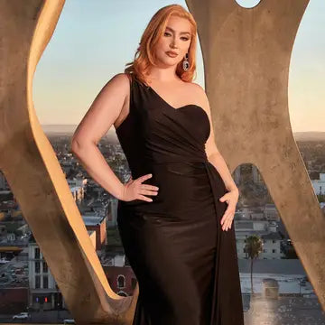 Curvy Fitted Stretch Satin One Shoulder Dress
