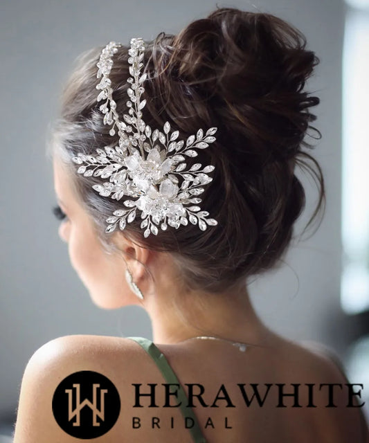 Elaborate Flower Bead and Pearls Bridal Hair Clip