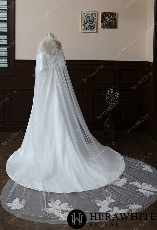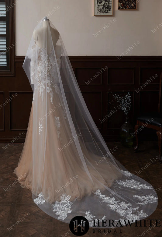 Floral And Dreamy Cathedral-Length Bridal Veil