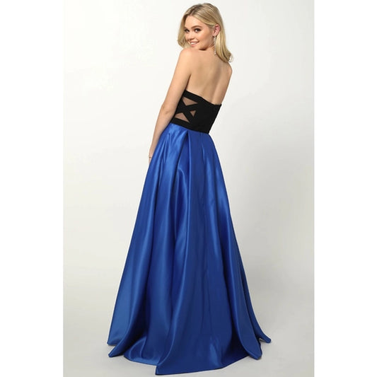 Satin Cut Out Gown with Embellishment Prom Dress