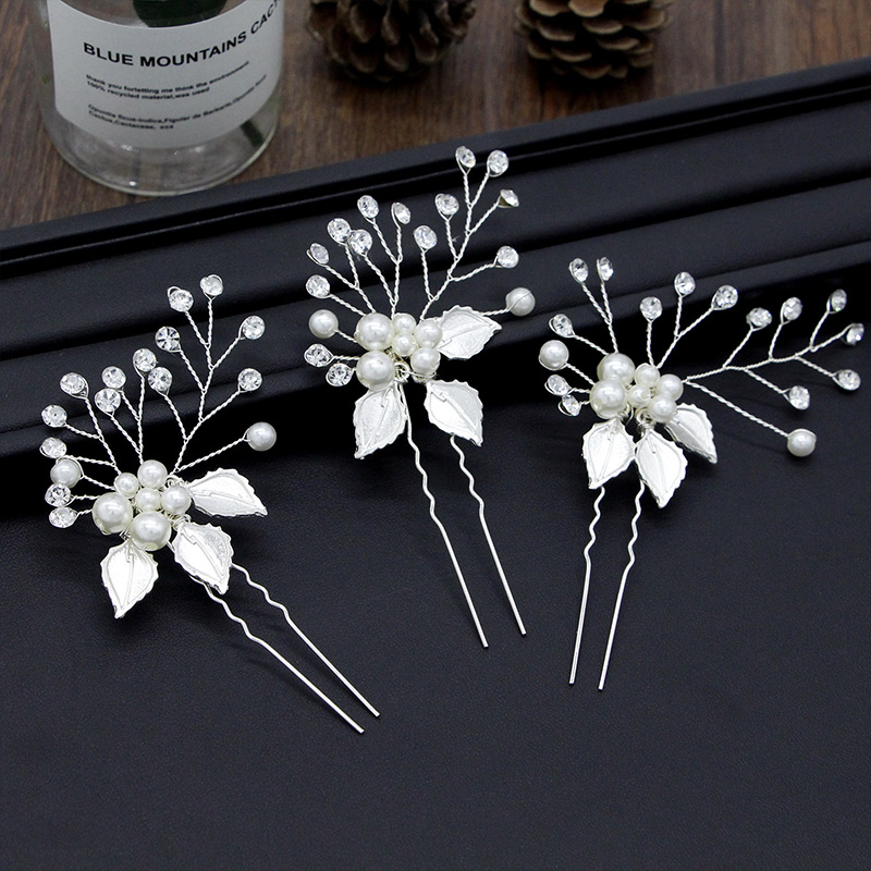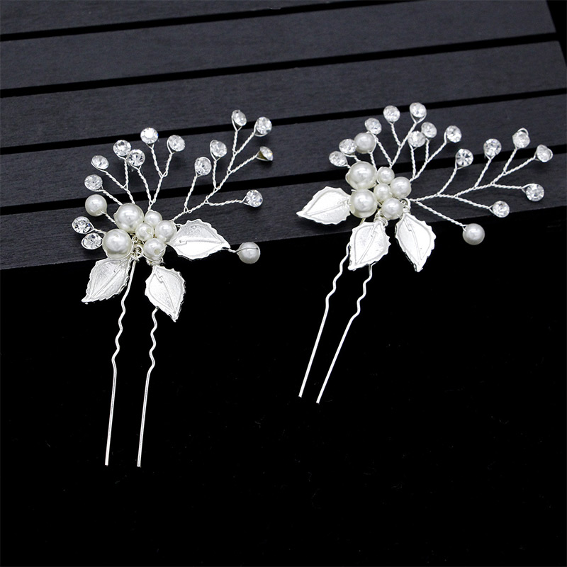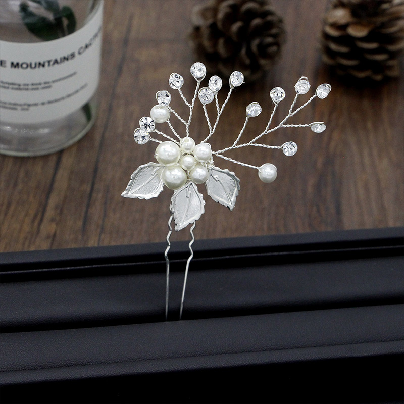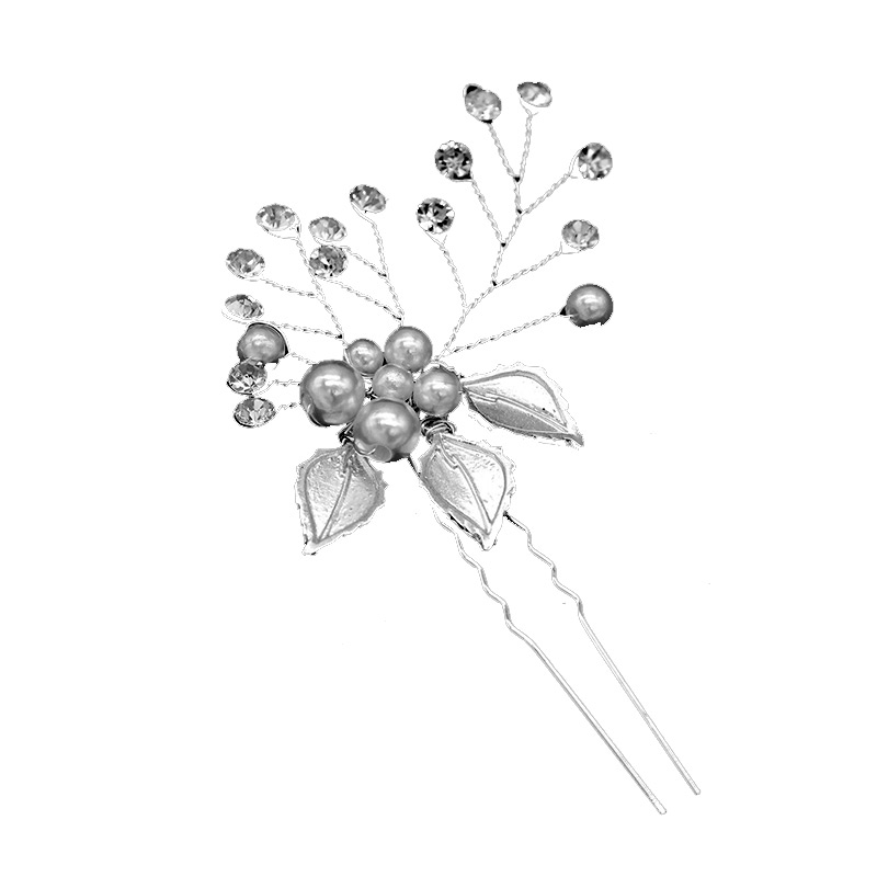 Crafted from silver plating, this elegant bridal hair pin showcases a classic branch and leaf design adorned with imitation pearls and crystal stones. Perfectly designed to secure a romantic up-do, this piece will give any bridal look a touch of timeless sophistication.