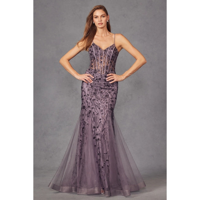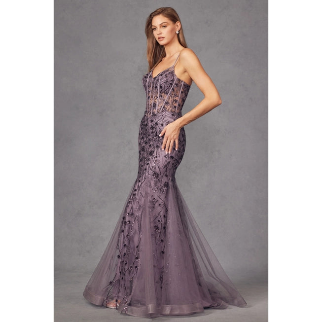 Lace Applique With See-Through Bodice Mermaid Prom Dress