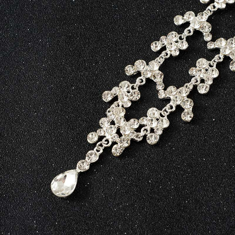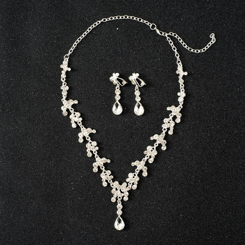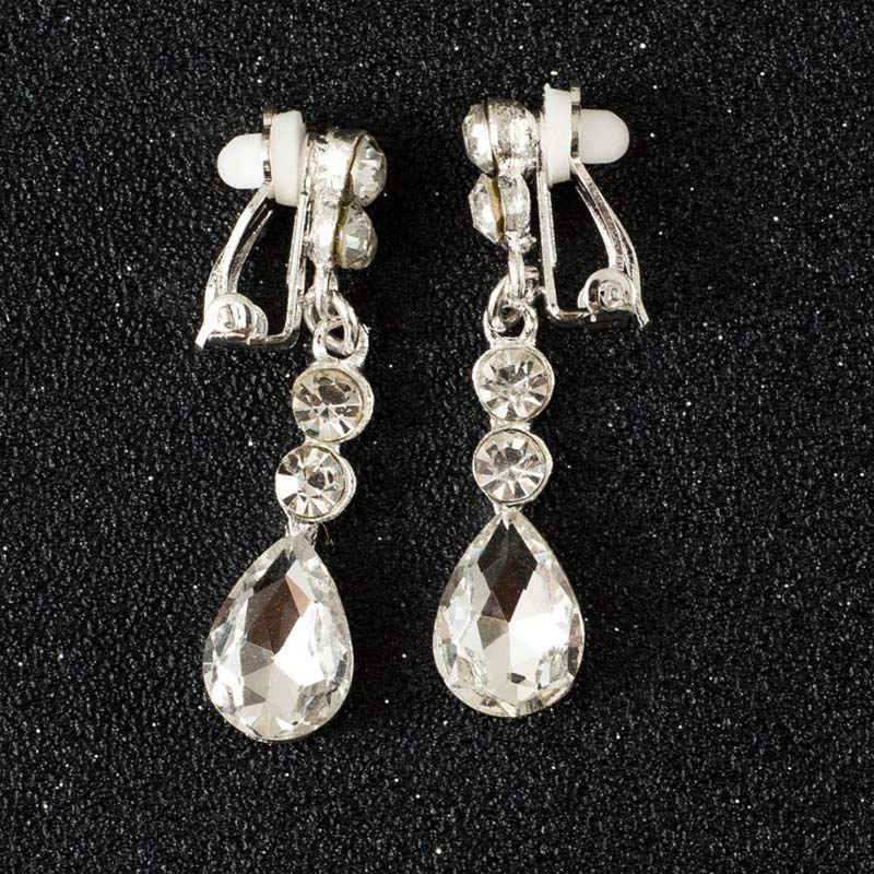Luxury Rhinestone Bridal teardrop necklace and clip earrings set