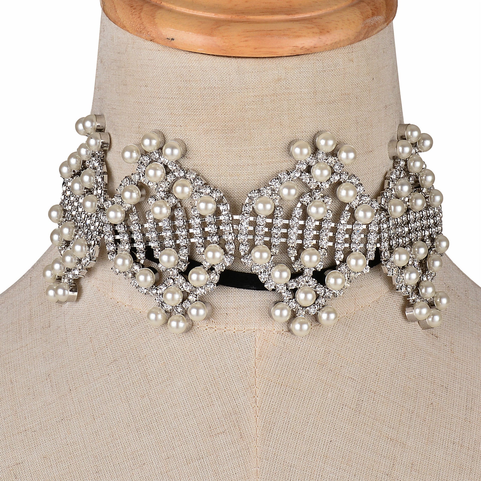 Complete your dream look today—add this exquisite Rhinestone and Pearl Antique Choker to your cart now!