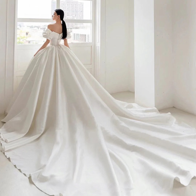 Indulge in the ultimate bridal experience with our Robe De Mariee Premium Wedding Gown. Exquisitely crafted with a French cut ball gown and adorned with a sweetheart neckline, off-the-shoulder flower design cap sleeves, and a dramatic train, this gown is the epitome of luxury and elegance. Feel like a true princess on your special day.