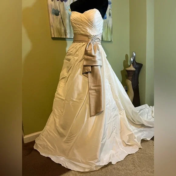 Clearance Sale: Sweetheart and Pleated Bodice Wedding Gown with Champagne Bow
