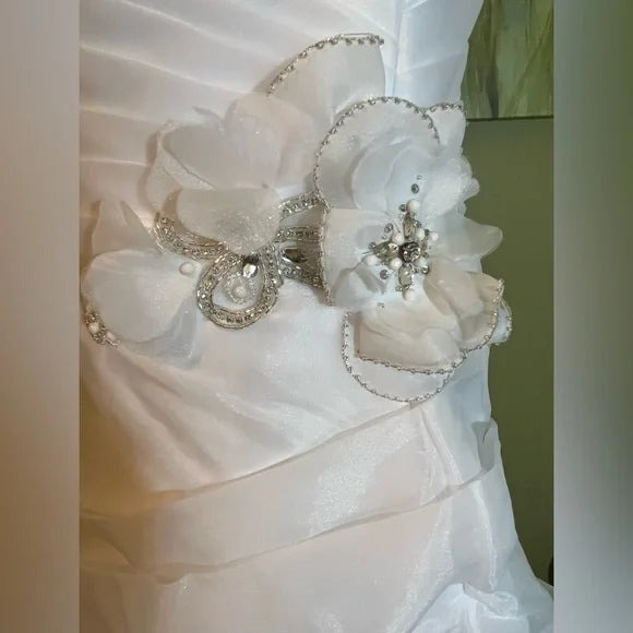 - Pleated Bodice with Floral Appliqués: Intricate pleats and shimmering rhinestone embellishments create depth and texture for a luxurious finish.