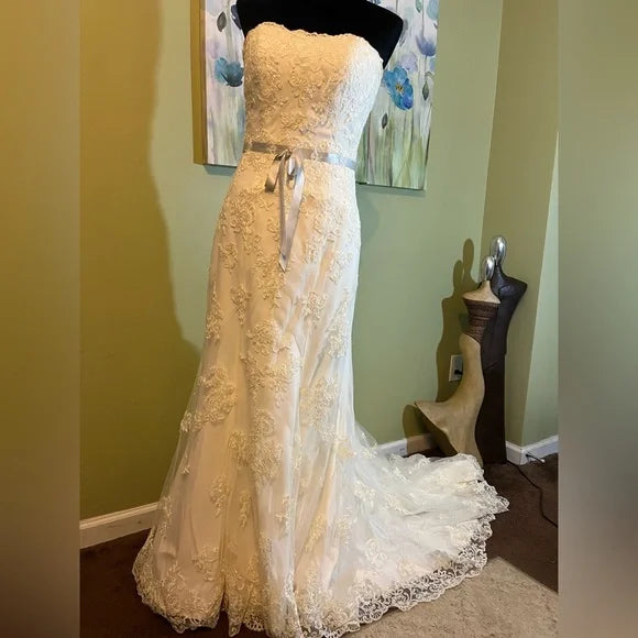 Clearance Sale: Vintage Lace Fitted Wedding Gown with Chapel Train